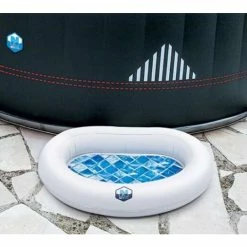 - Positionner le spa sur le tapis de sol fourni. Le sol doit être parfaitement plat et ferme. Une fois en eau, le spa pèse plus de 800 kg
